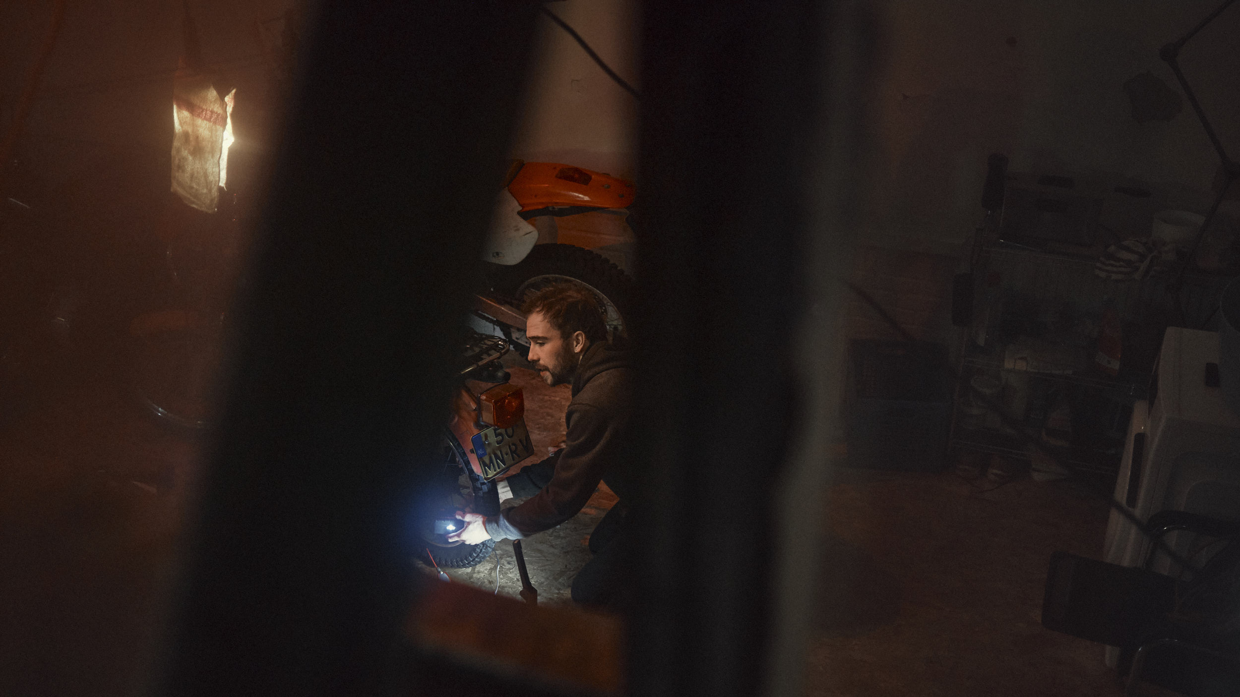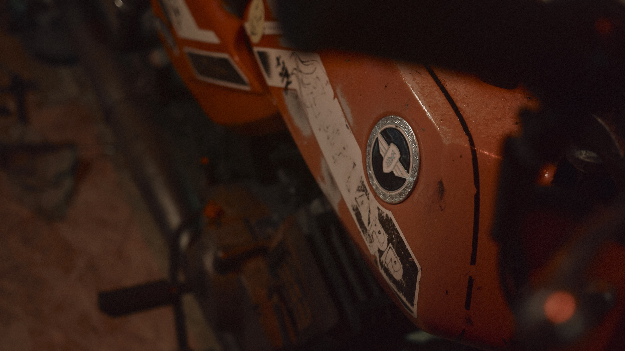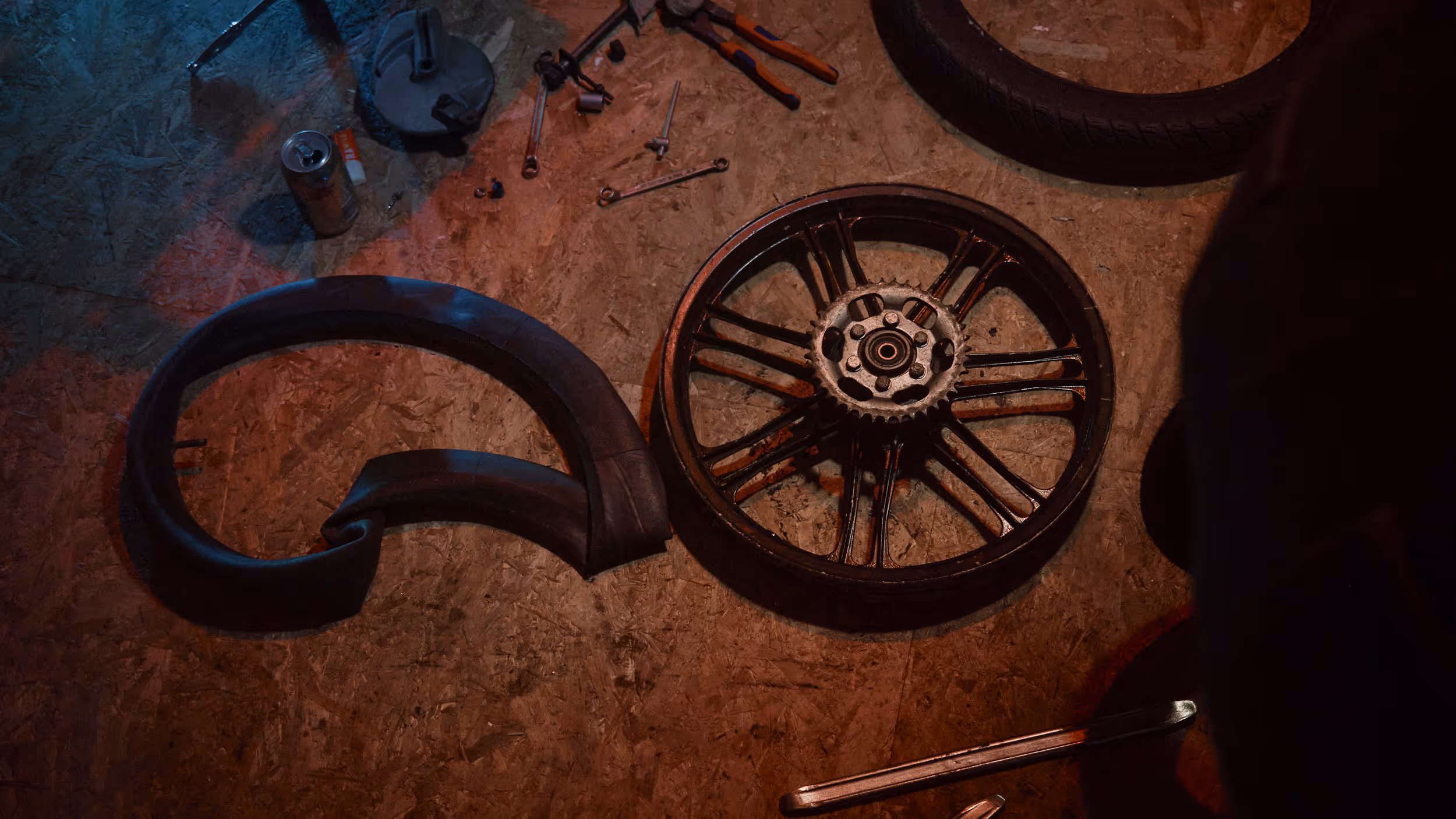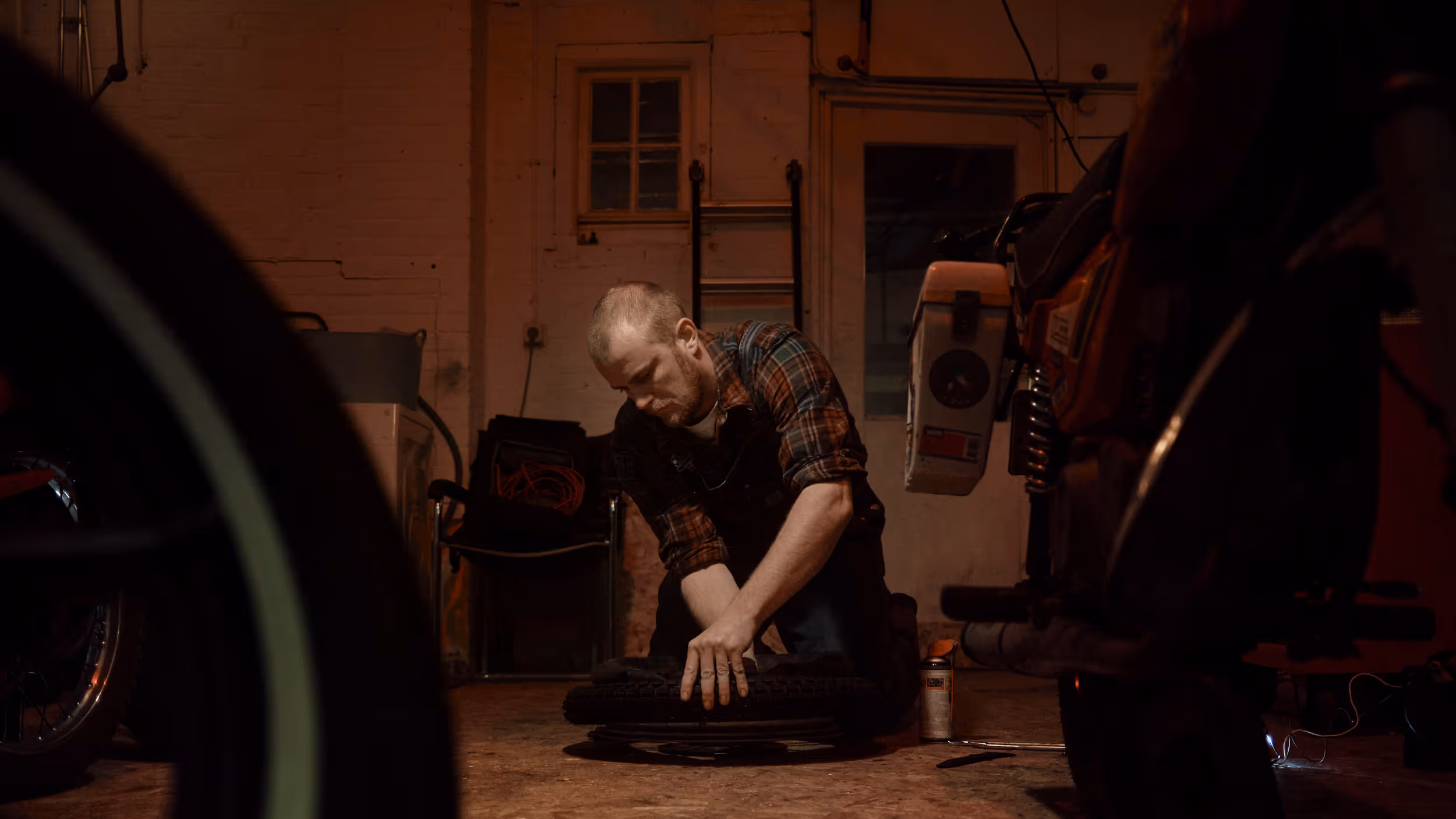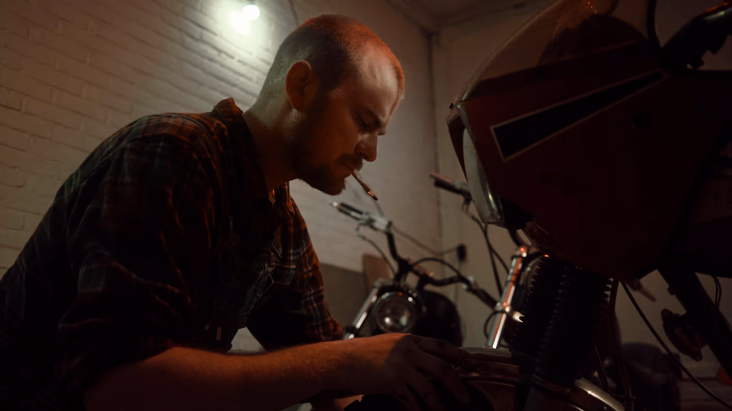 Two friends preparing their bikes for an upcoming Sahara trip.