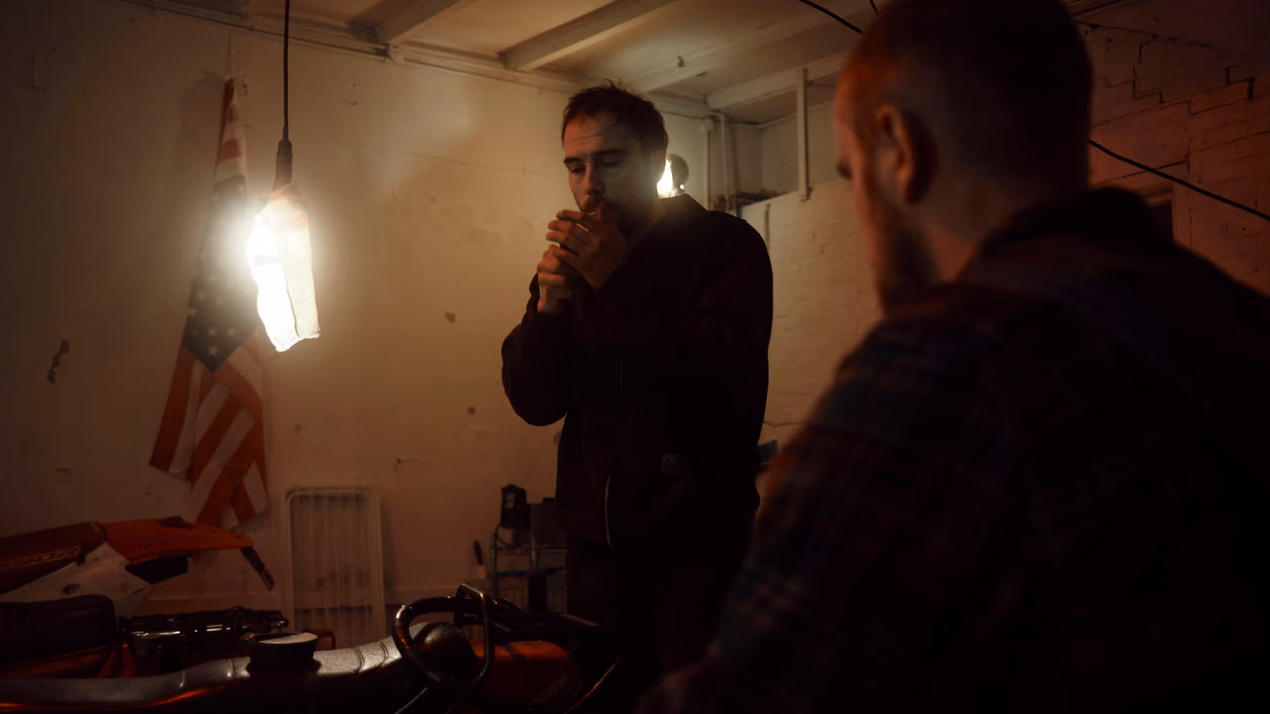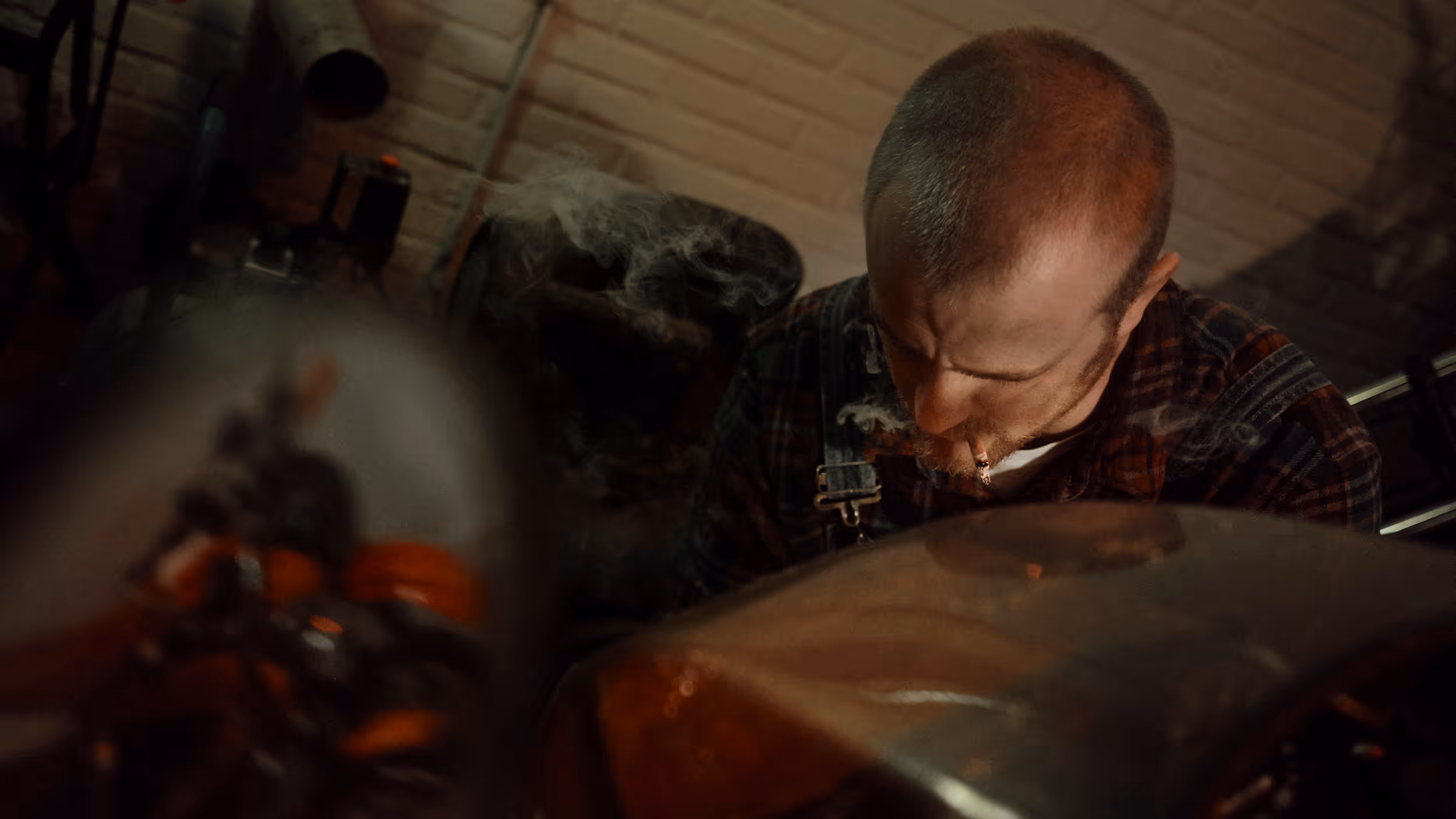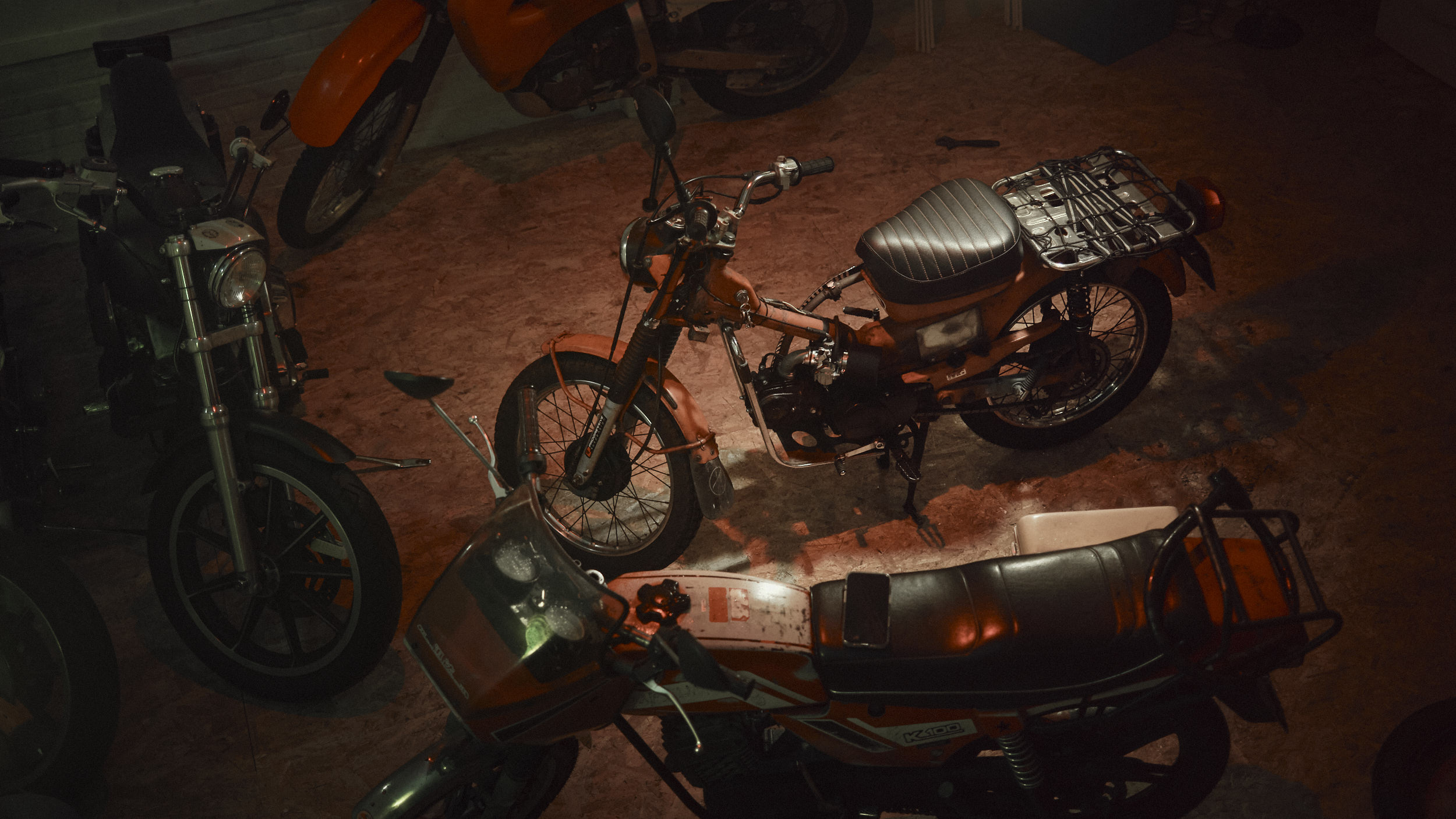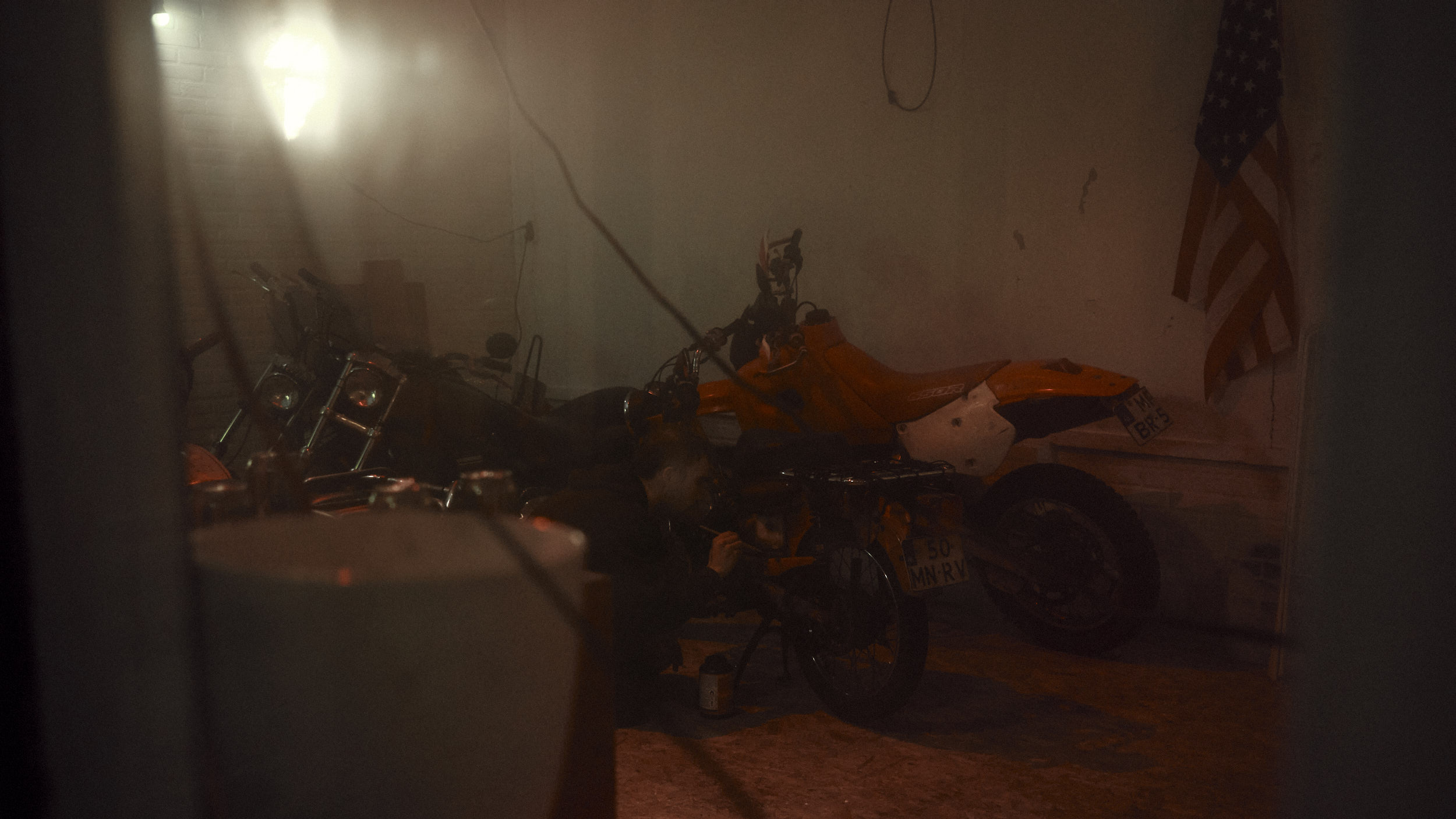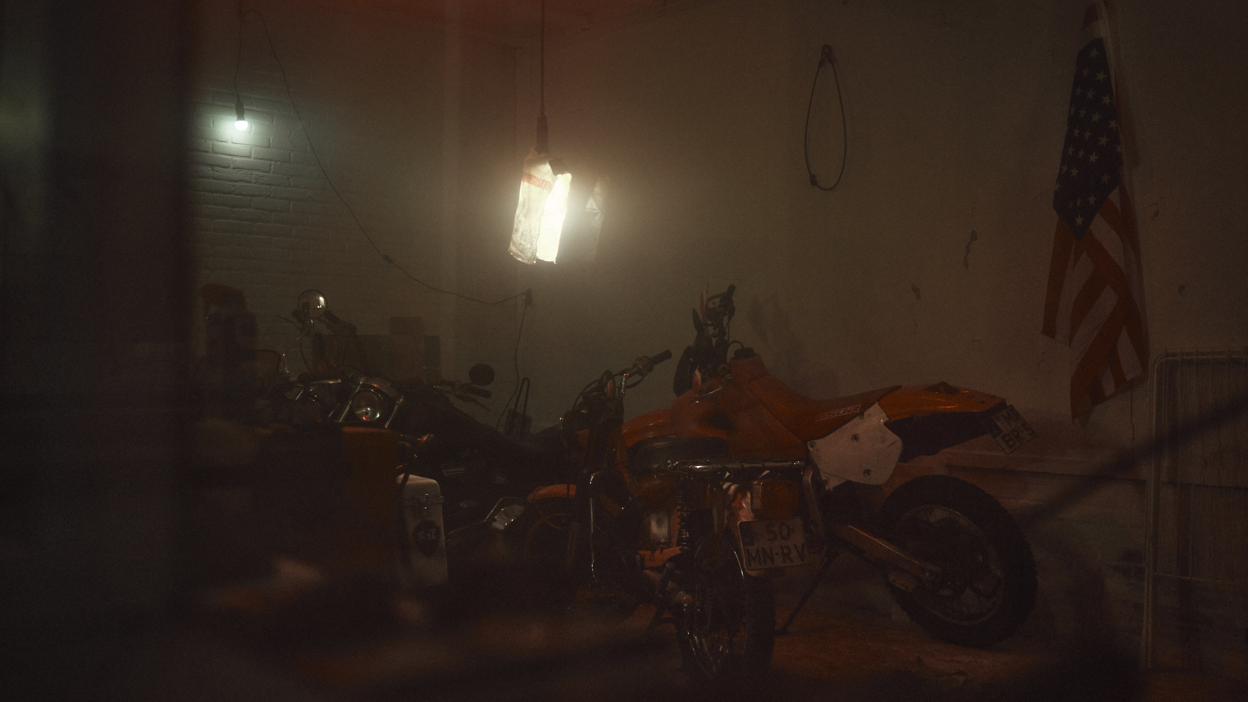 Two friends preparing their bikes for an upcoming Sahara trip.
