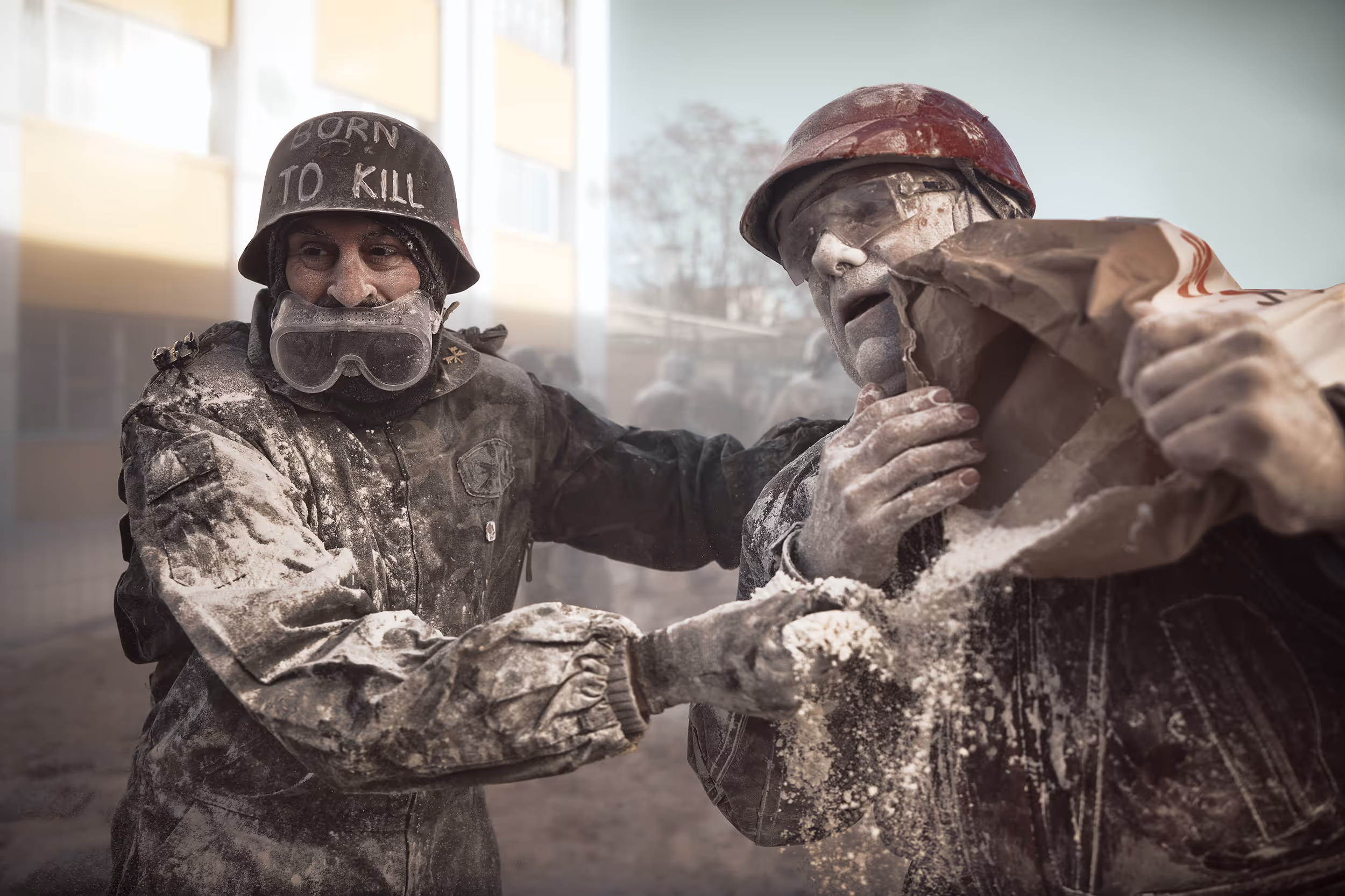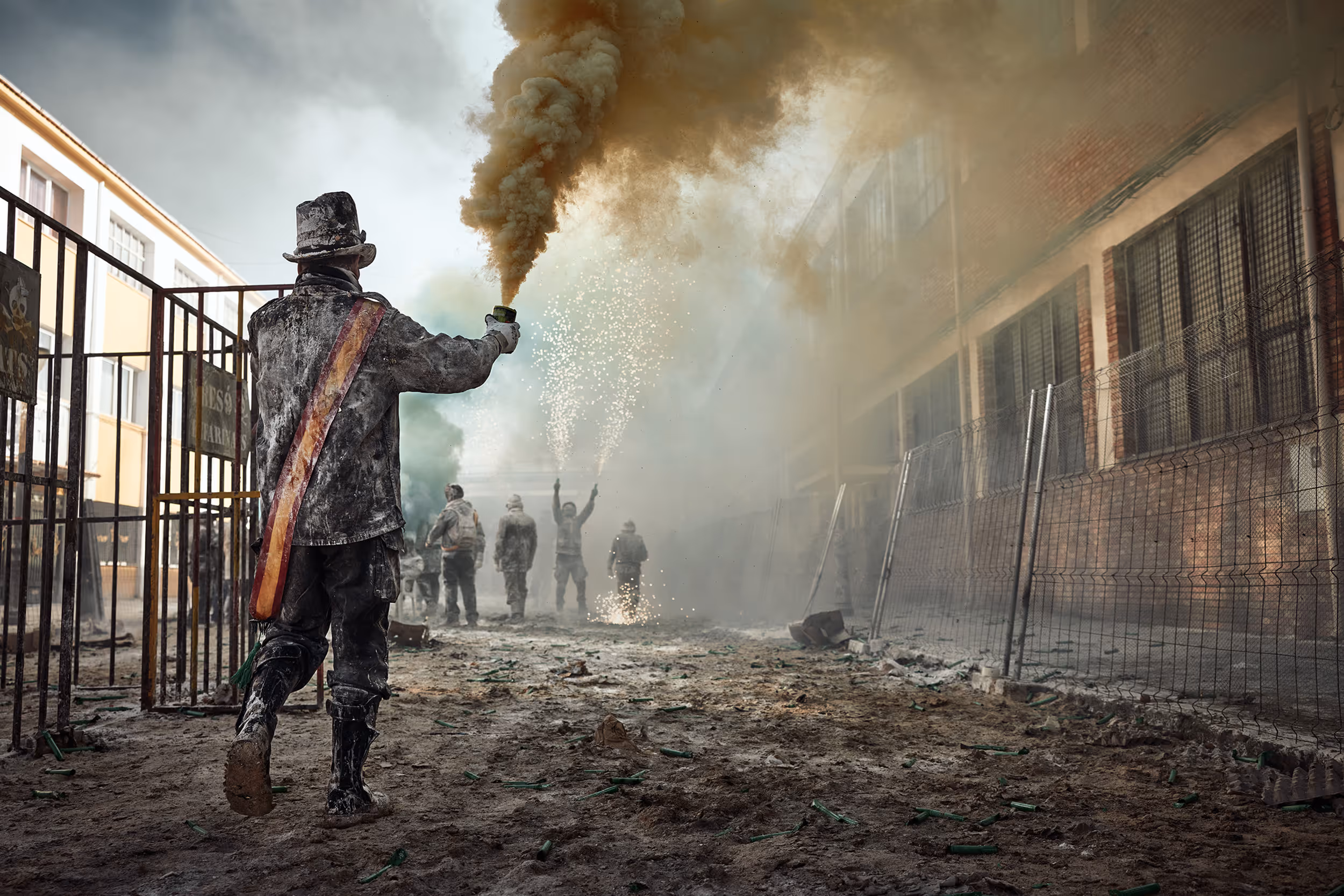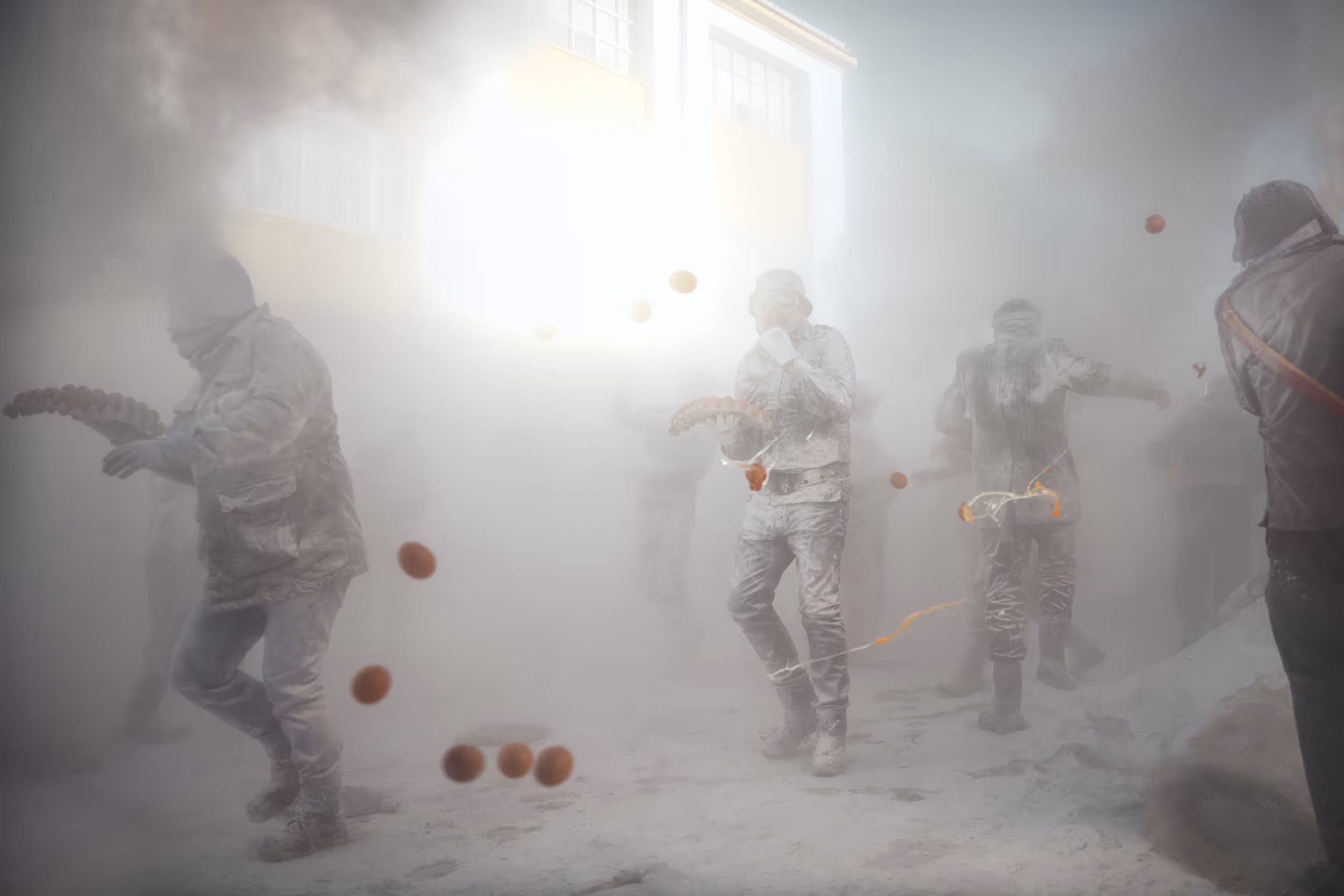 The annual festival takes place in the town of Ibi in Alicante, Spain on December 28, as part of celebrations related to the Day of the Innocents. In the day-long festival, participants known as the Els Enfarinats dress up in mock military clothing and stage a mock coup d’état. They redeem their authority under a blaze of fireworks, flour bombs, and eggs. For a brief two-hour period I found myself in a warzone.