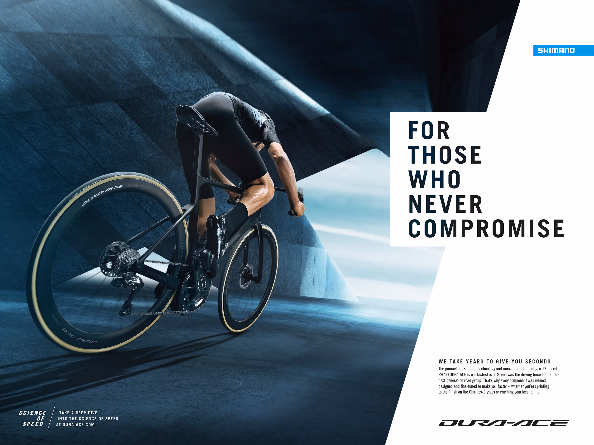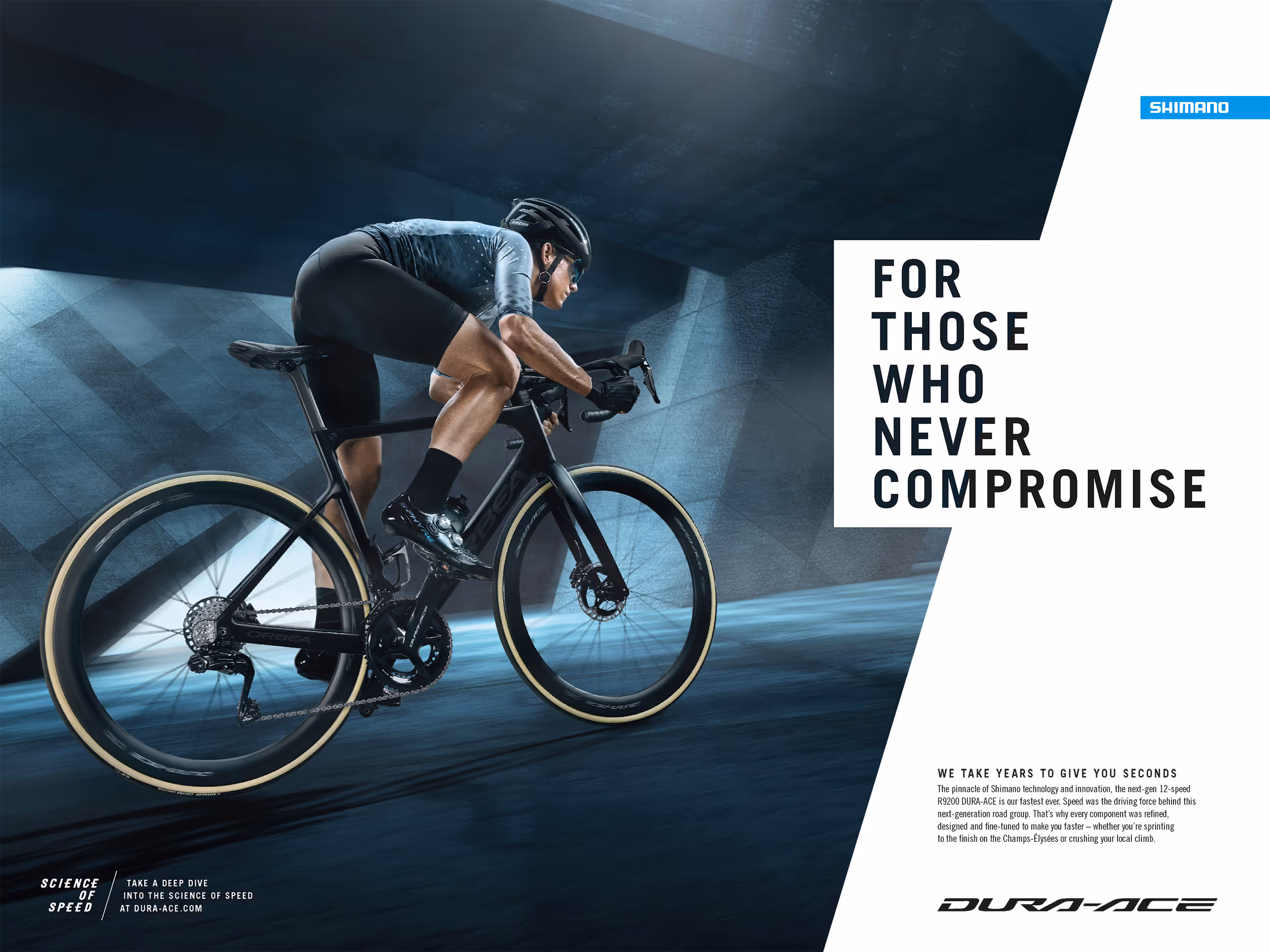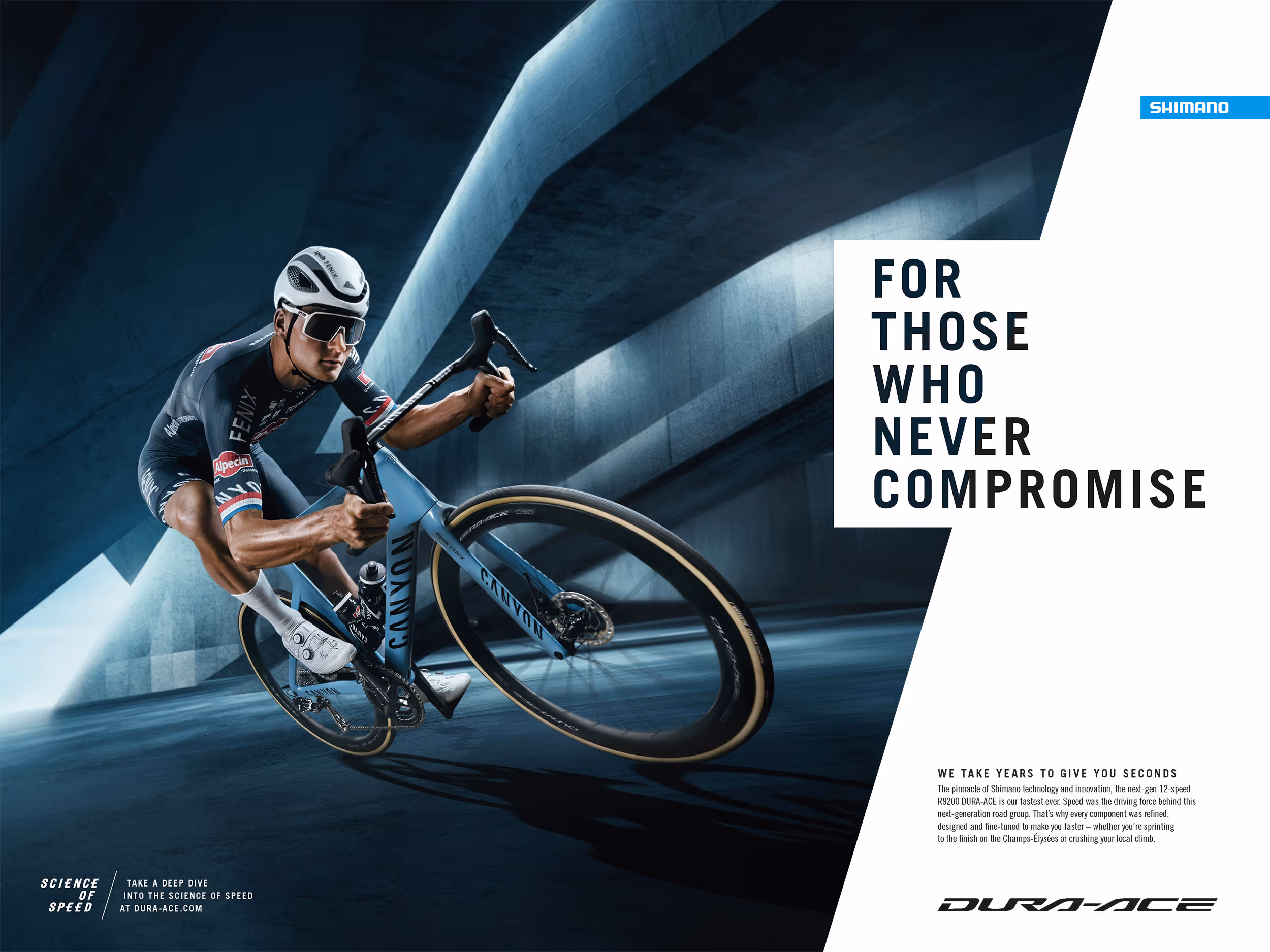 Global campaign for Shimano’s flagship, the Dura-Ace system. Photographed with the legendary all-around winning cyclist Mathieu van der Poel, Coryn Rivera, and others.