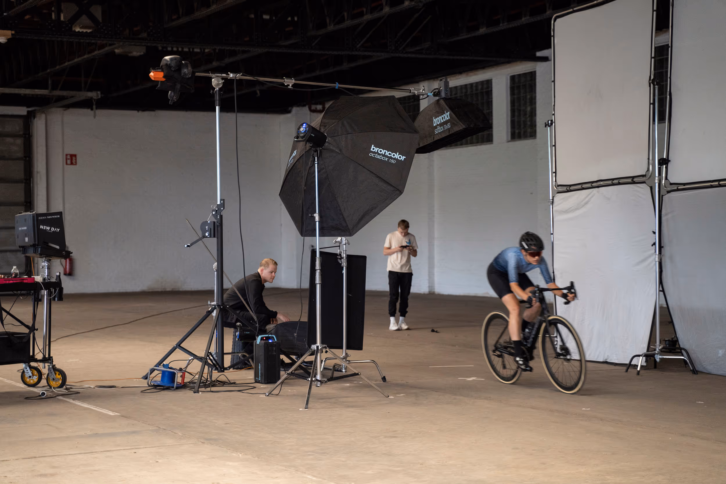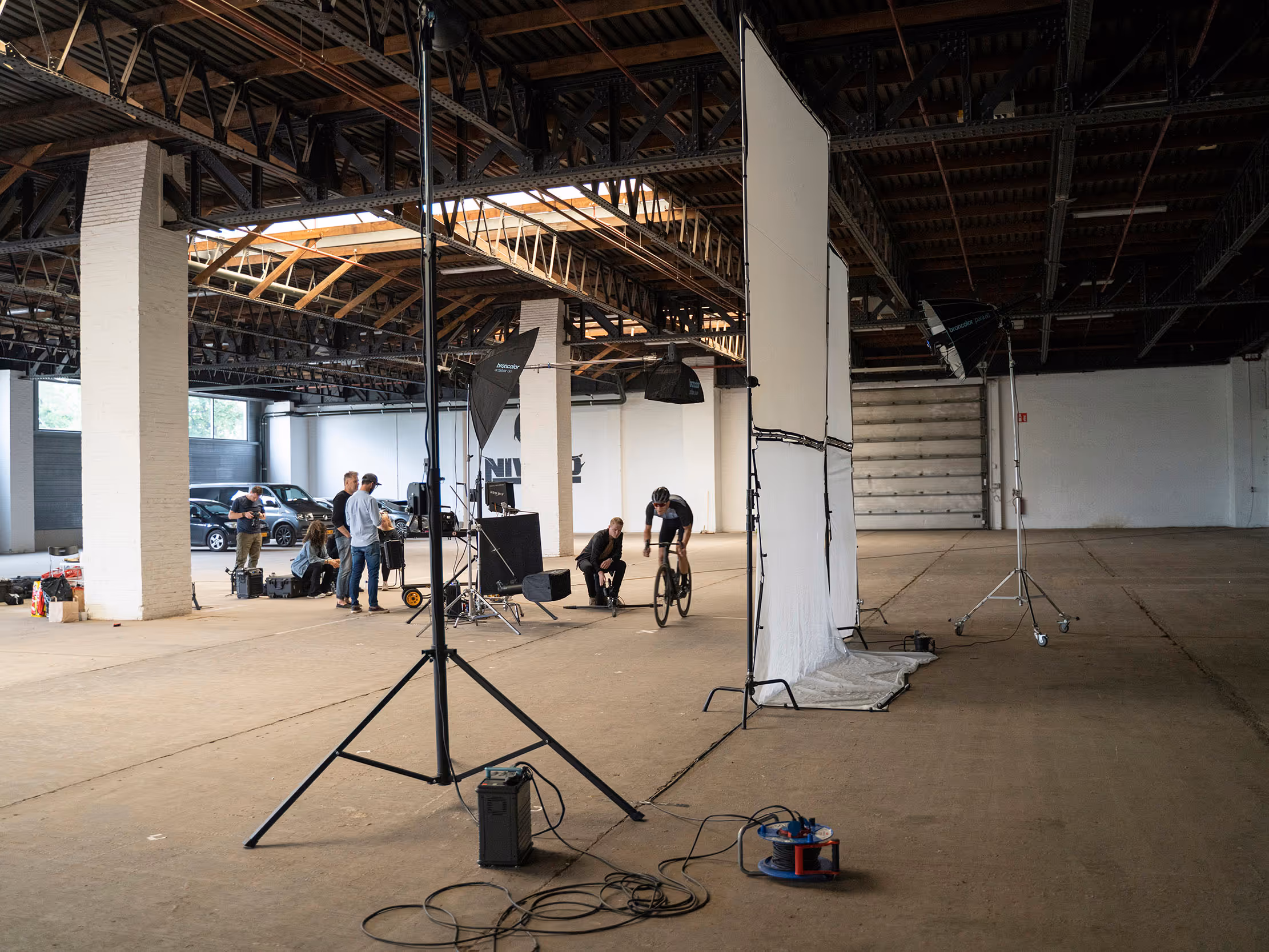 The shoot itself was a big production puzzle because of the schedules of the different riders, location, and the arrival of the first product. A few weeks prior to the actual shooting days we had a test day where we photographed every angle needed for the campaign with a test rider and figured out where all the lights needed to be placed. This ensured us that we knew actually how the images needed to be shot because we had limited time with every rider.