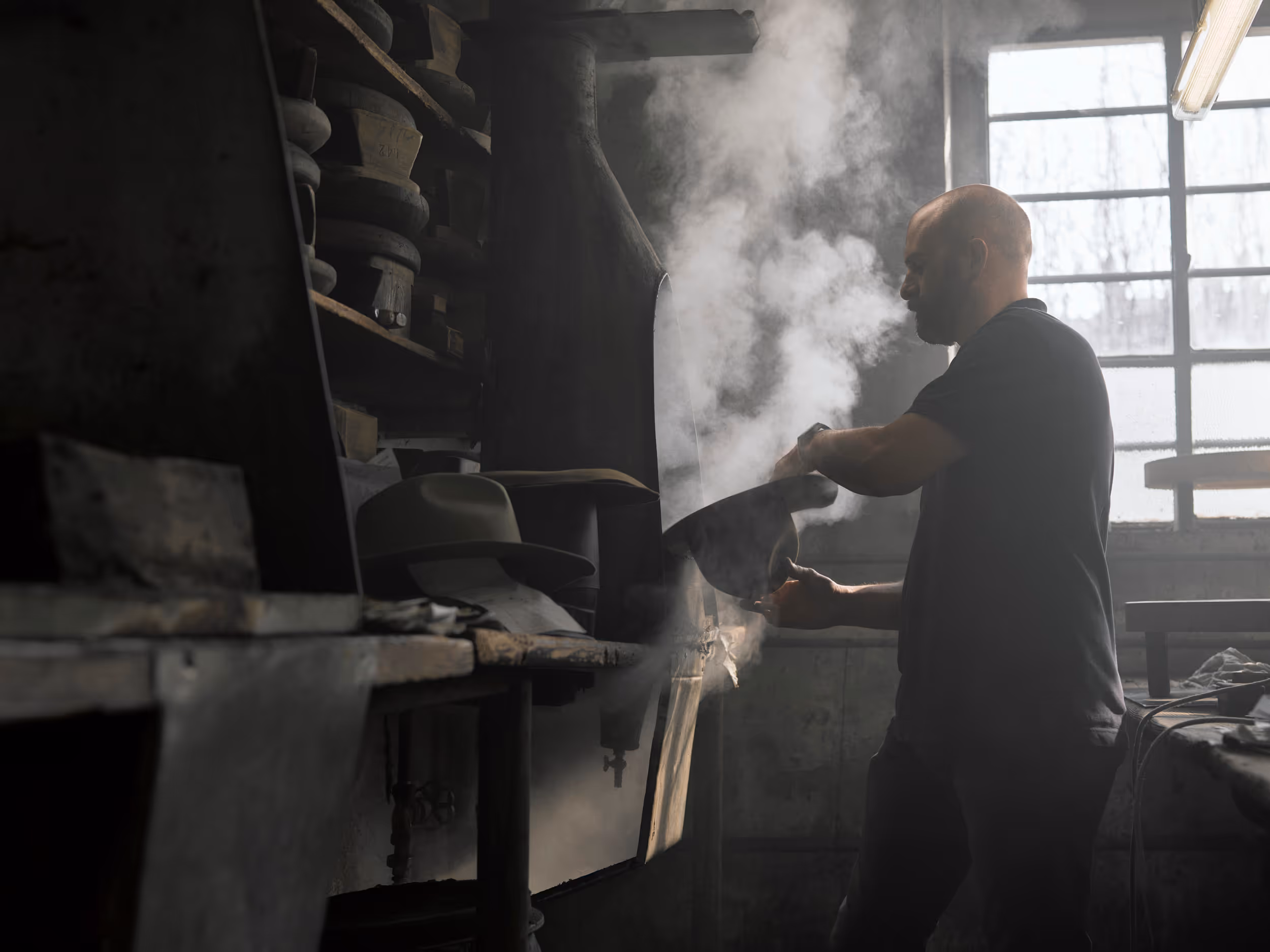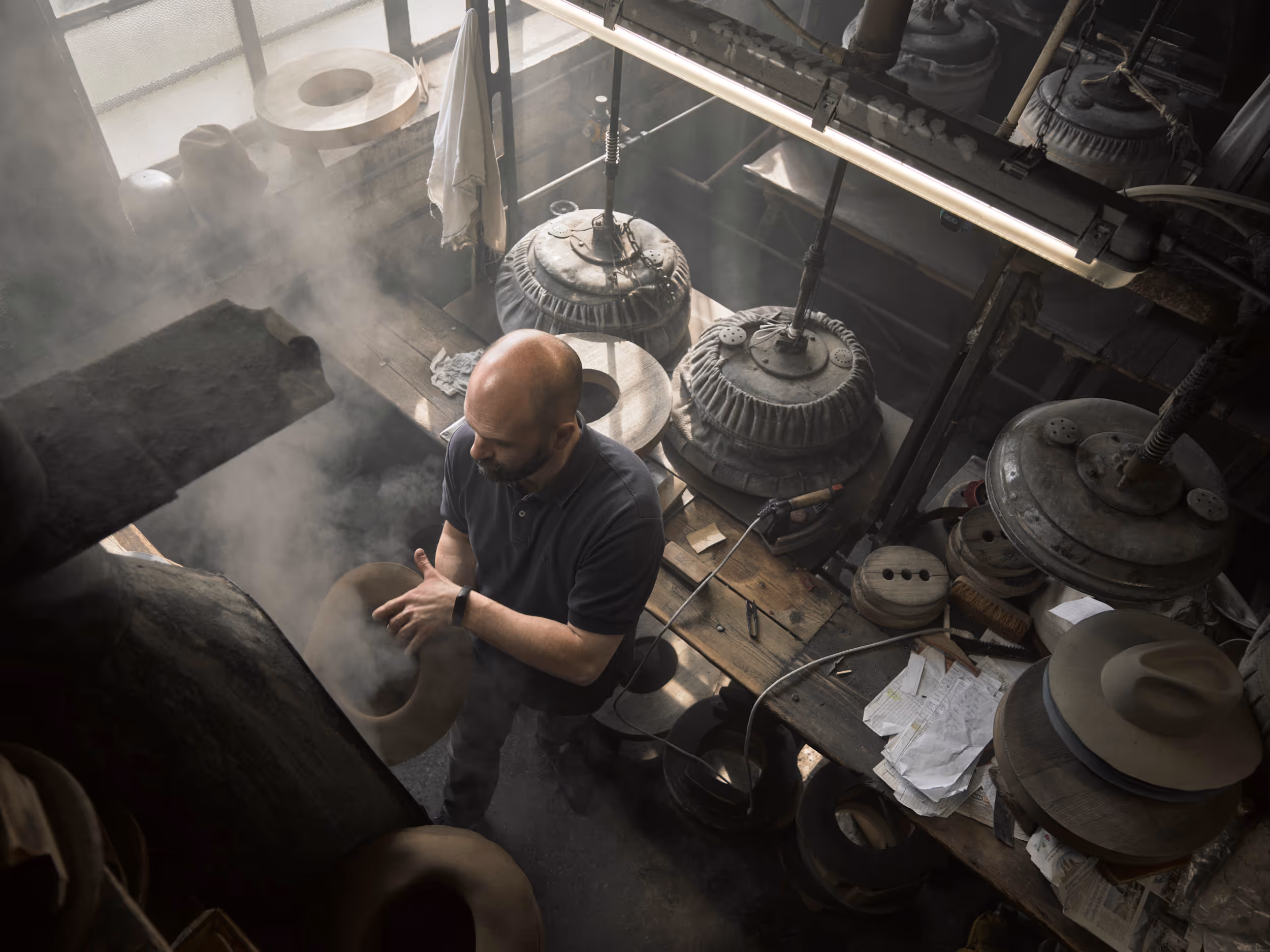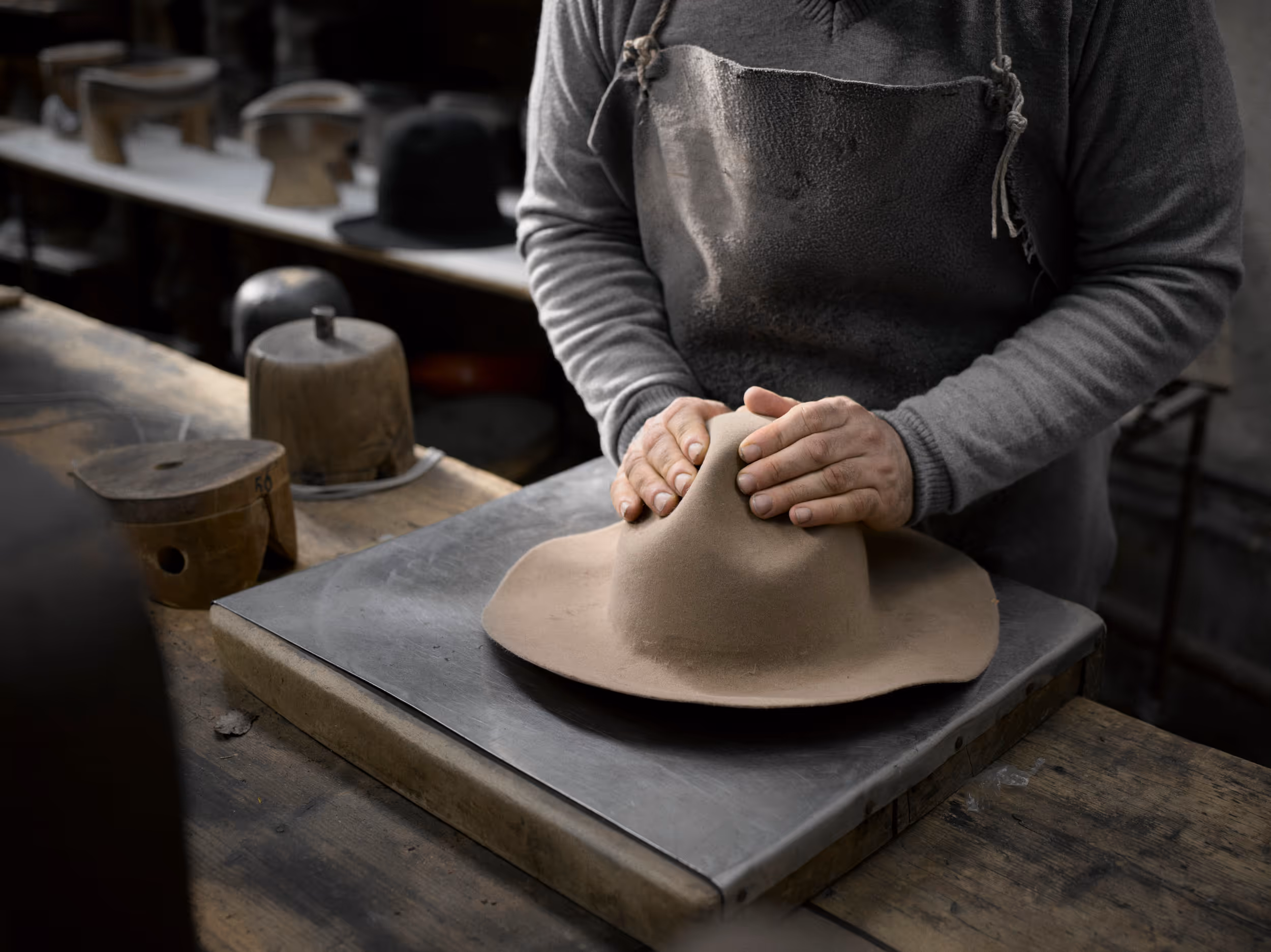 All hats are made by hand with wooden molds or by manual processes using special machines in a completely artisanal way with dozens of steps between shaping, shaving, and finishing.