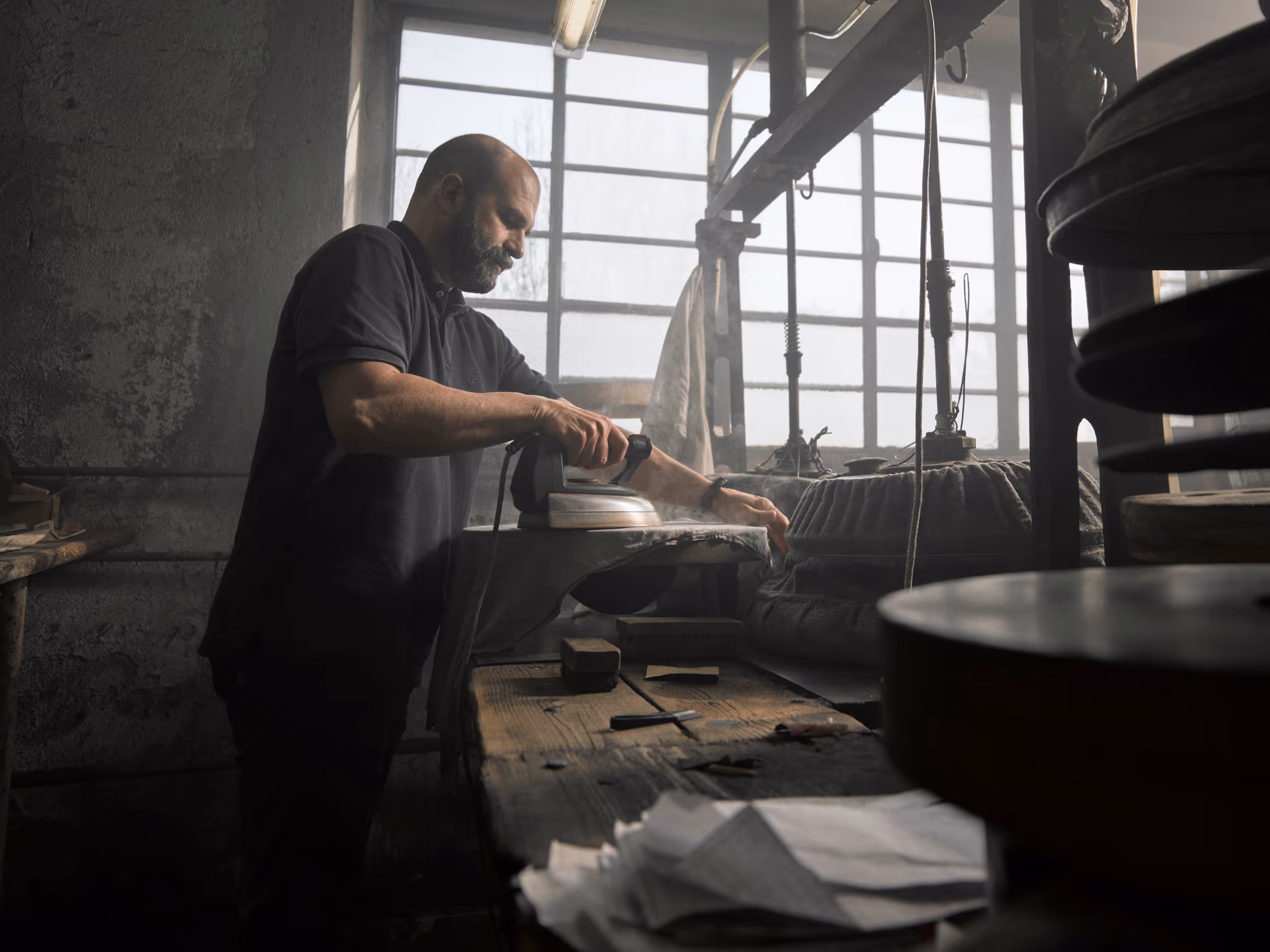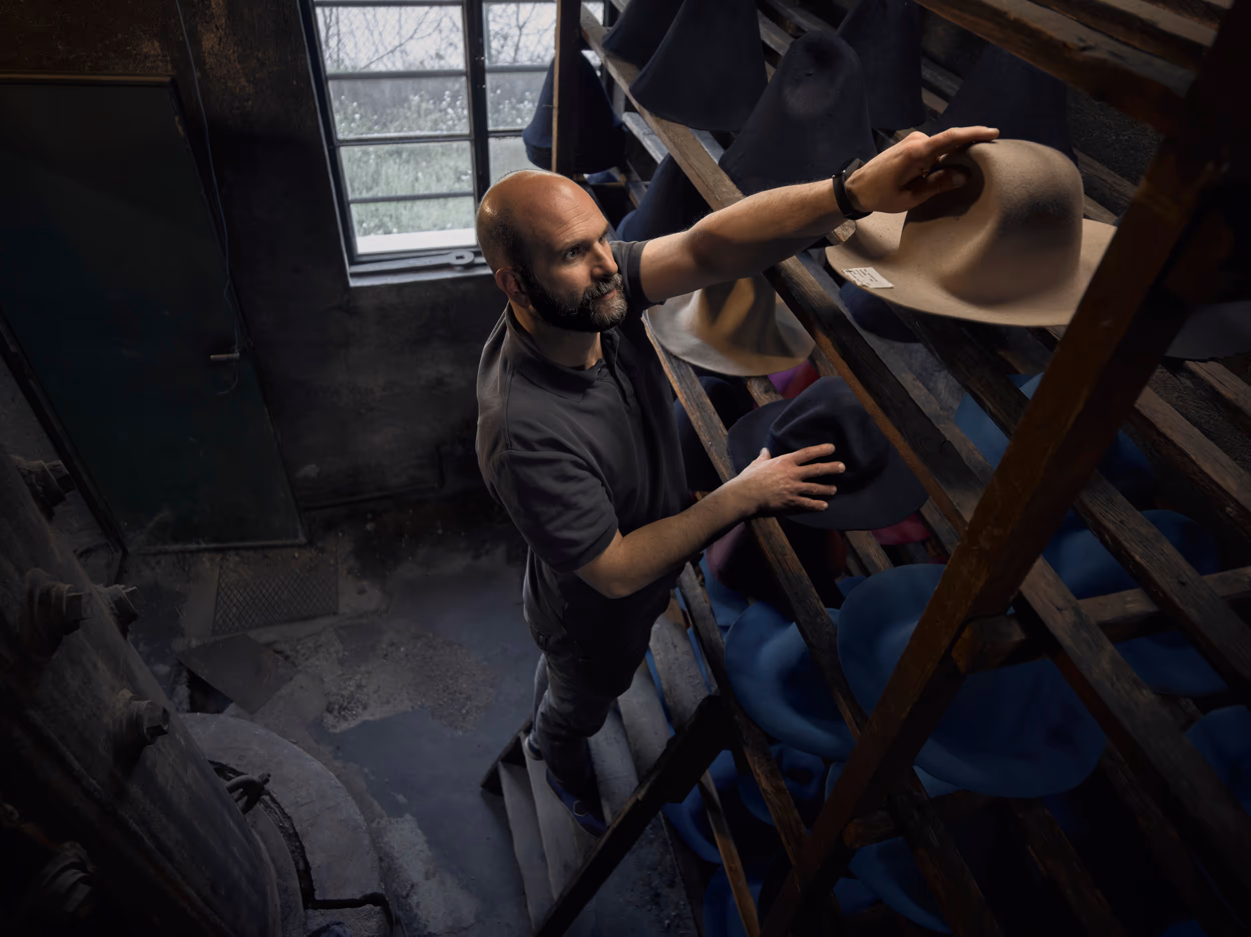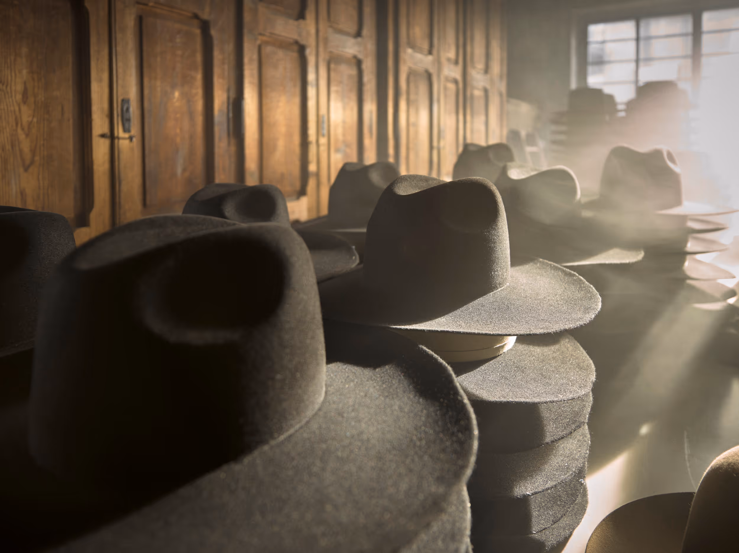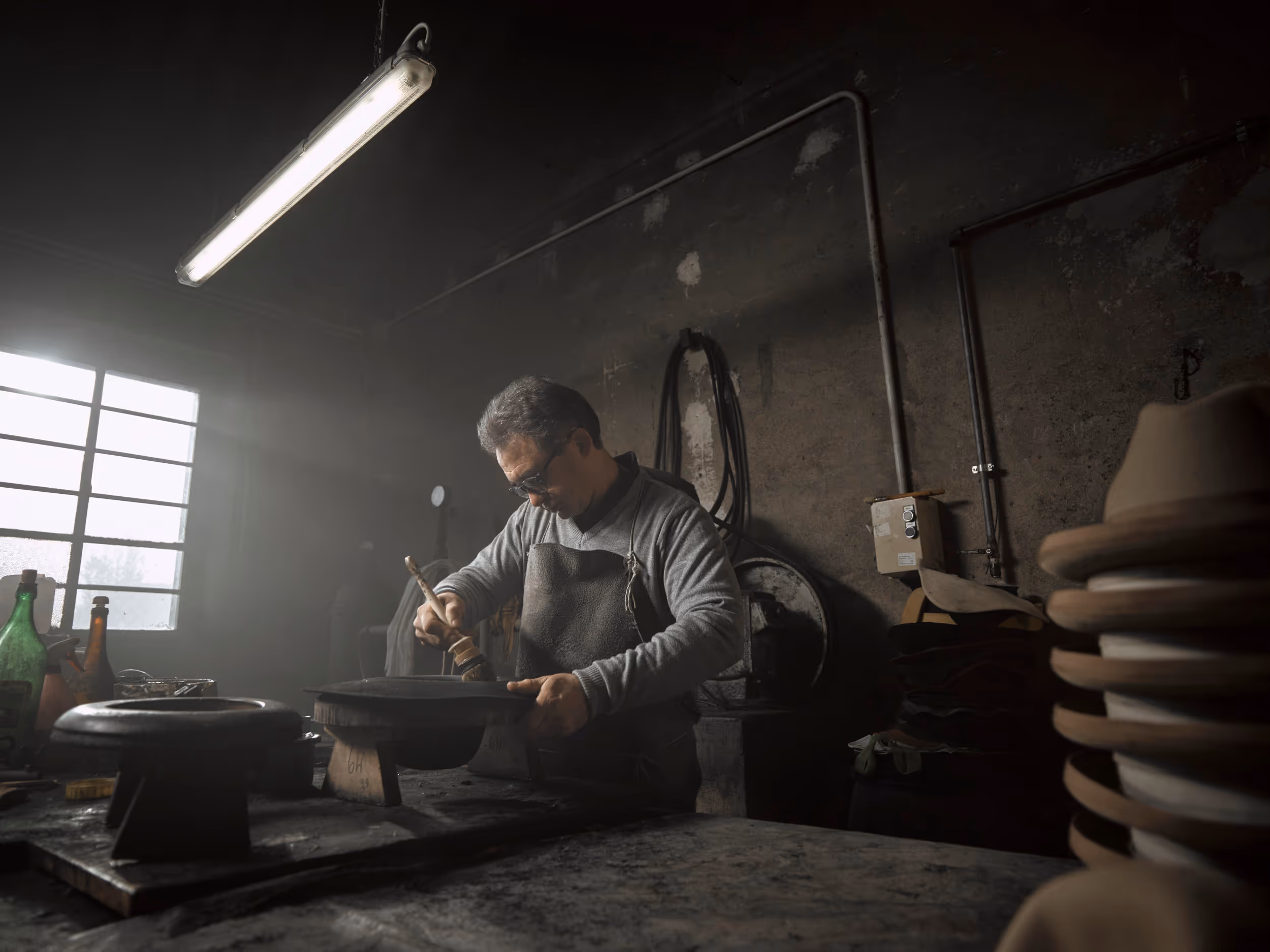 All hats are made by hand with wooden molds or by manual processes using special machines in a completely artisanal way with dozens of steps between shaping, shaving, and finishing.